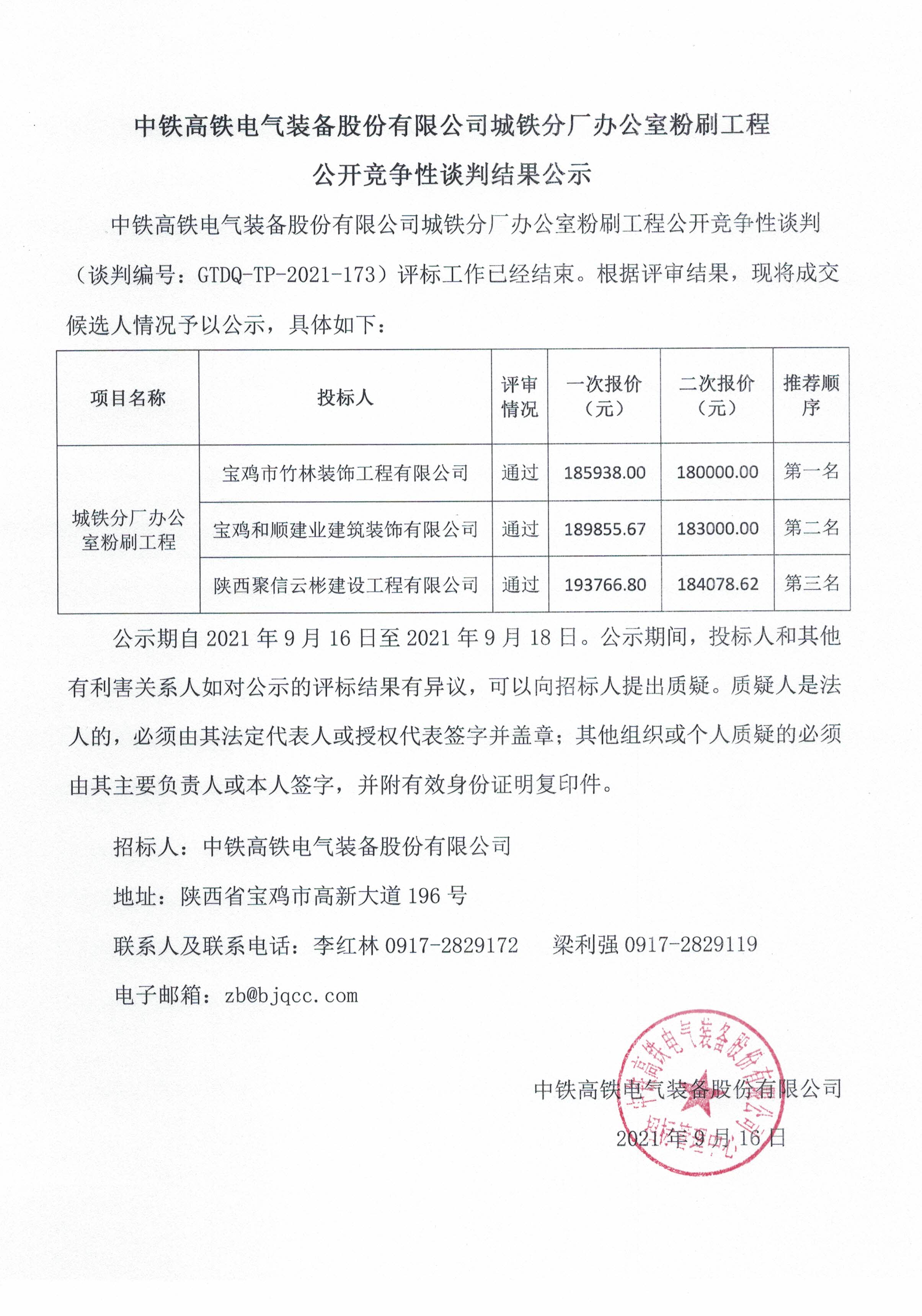 GTDQ-TP-2021-1733044am永利公司城铁分厂办公室粉刷工程公开竞争性谈判结果公示