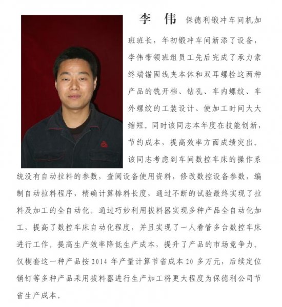 2014年度公司“十佳”员工简要事迹